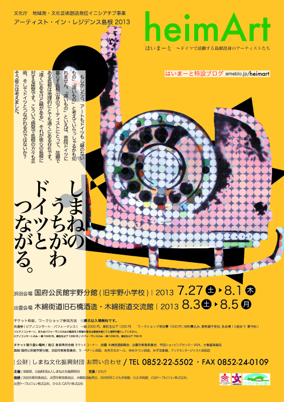 „heimArt #1“. Datum: 2013/07/06Autor: miu_lab Kategorie: Exhibition, Performance, Projekt in Japan Beitragsnavigation Ausstellung „Zwei Meter Abstand“ → Yoshie Shibahara + miu: Performance „EXUVIAE“. Ausstellung „Bilder lesen, Klang erzogen.“