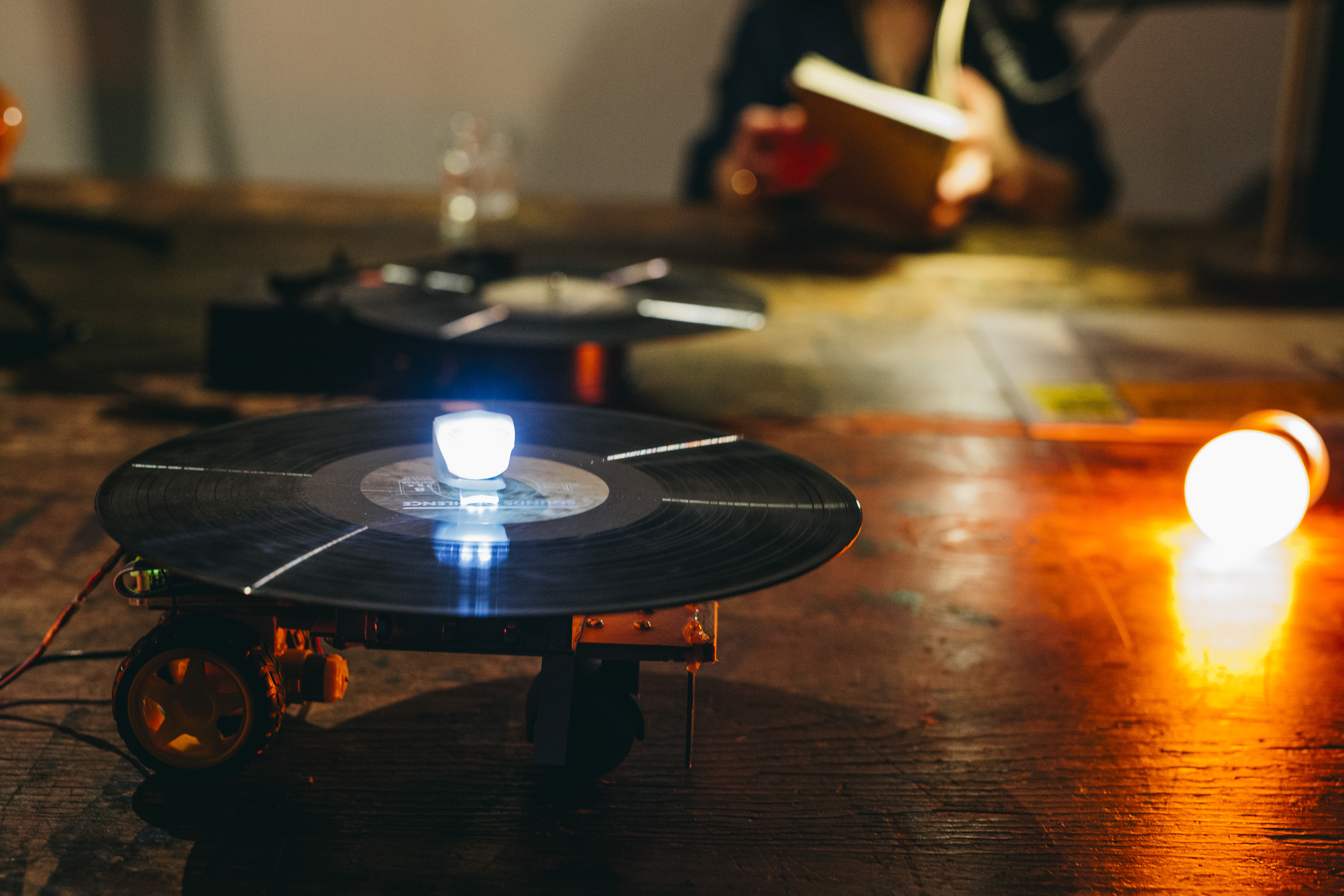 Dieser „Interpret“ ist vielstimmig: Es sind zum einen Performer, die das Buch vorlesen und deren Stimmen in Echtzeit miteinbezogen, verarbeitet und zu einer poetischen Klanglandschaft gestaltet werden. Zum anderen ist der „Interpret“ auch ein Computersystem: Das Buch, also die „Partitur“, wird von einer computergesteuerten Motorik durchgeblättert, und die geöffnete Seite wird vom Bilderkennungssystem in Echtzeit als Bild gescannt. Die aufgenommenen Informationen werden als Parameter verwendet, die die Notation und die Klangsynthese beeinflussen. Im ganzen System sind mehrere Mikrocomputer (Raspberry pi) in Einsatz.