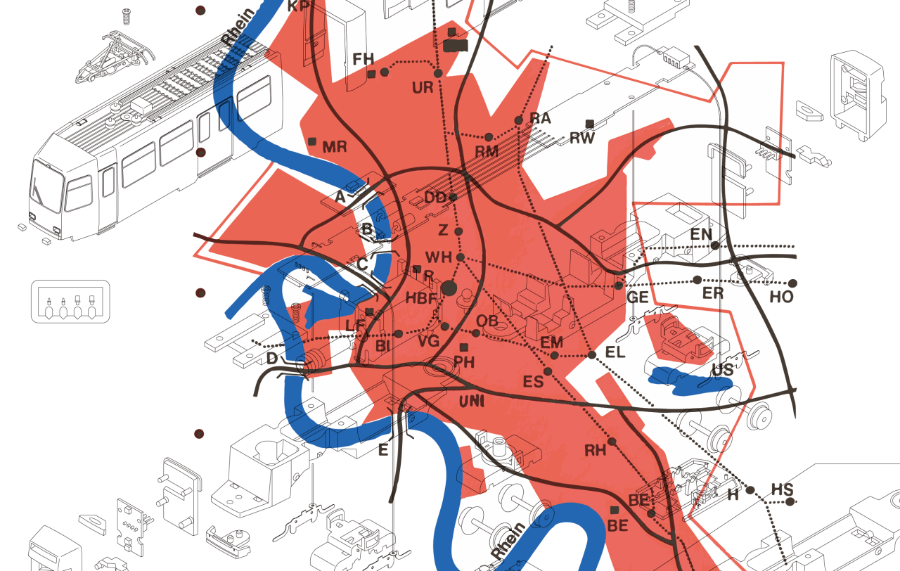 „Train Train 1/3“ ist der Auftakt einer Trilogie, in der der Konzeptkünstler miu gemeinsam mit Verbündeten Straßenbahnnetze und deren Rolle für die Bewegung von Körpern im Stadtraum untersucht. miu interessieren Netzwerke verschiedener Art, die auf oft unsichtbare Weise Verbindungen zwischen bewegten Körpern herstellen. Mit Blick auf Knotenpunkte, Transit und Leitsysteme für Menschen mit Sehbeeinträchtigung wird gefragt, wie Mobilität im urbanen Zusammenleben organisiert ist. Wie wachsen Strukturen, wo verschwinden oder enden sie und was sind die Auswirkungen davon?