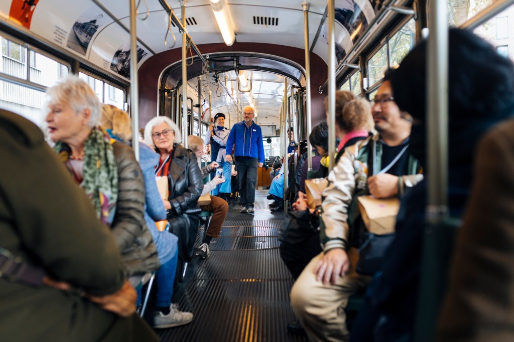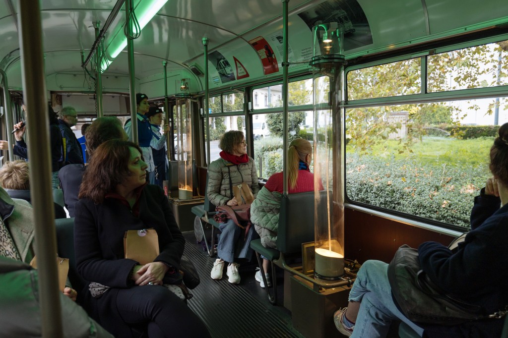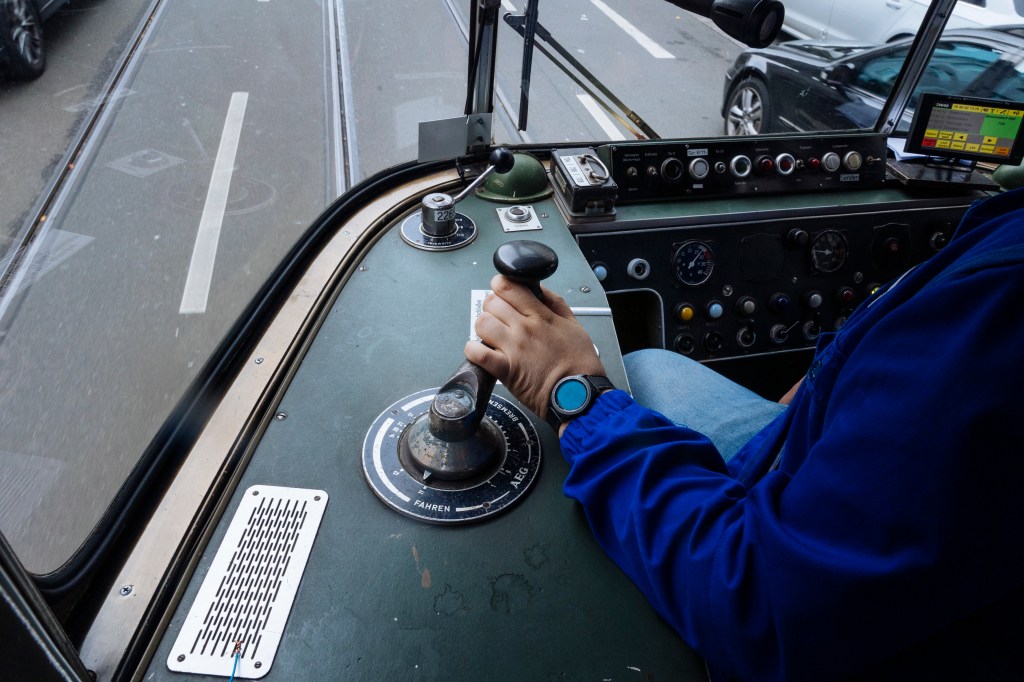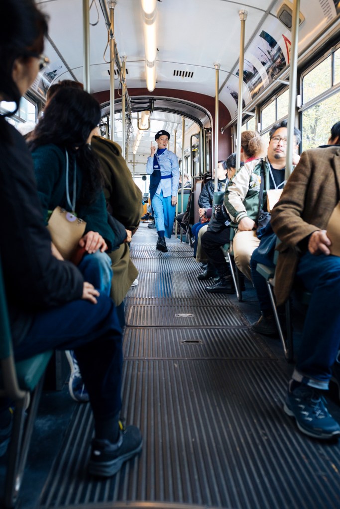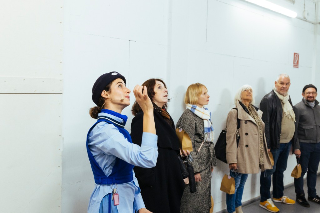 Der Konzeptkünstler miu und sein Team laden zu einem performativ-installativen Ausflug ein. Los geht es im Theaterfoyer, dann steigt das Publikum in einen historischen Straßenbahnwagen und fährt an einen speziell inszenierten Ort im Stadtraum (und wieder zurück). Unterwegs eröffnen sich ungewöhnliche Perspektiven auf Bewegung in der Stadt: Alltägliche Fortbewegungsmethoden verwandeln sich in heimliche Choreografien, bekannte Geräusche und die Stimmen der drei Performerinnen verdichten sich zu akustischen Warteräumen. Der Ort des Transits wird zum Ort des Verweilens, zukunftsgerichtete Wartezeit wird zur Erkundung des Jetzt. Es gibt eine offene Audiodeskription, die für nichtsehendes wie sehendes Publikum den Raum, Bewegungen und unsichtbare Verknüpfungen in Worte fasst, und die zum Teil der Klanglandschaft wird. Als Teil zwei der Trilogie „train train“ wird das Projekt in Kooperation mit der Arbeitsgemeinschaft historischer Nahverkehr Düsseldorf e.V. „Linie D“ und der Rheinbahn realisiert.