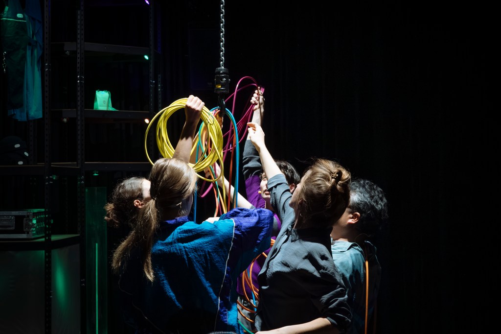 Konzept, System-Komposition, Ton und Regie: miu / Dramaturgie: Judith Ayuso Pereira, Jana Griess, Valeska Klug / Performance+Live Audiodeskription: Juliette Adrover, Kati Masami Menze, Kristin Schuster / Performance+Übersetzung: Soya Arakawa (Japanisch), Laura Strack (Französisch) / Szenografie + Licht: scheinzeitmenschen (Birk-André Hildebrandt, Valeska Klug) / Technische Leitung: Moritz Bütow / Kostüm: Akiko Stiebeling / Künstlerische Unterstützung: Marie Ogoshi / Beratung Barriefreiheit – Aestetics of Access: Sylvie Ebelt, Sabine Kuxdorf, Yasha Müller, Linda Wolf / Projektleitung: Carina Graf, Akiko Okamoto / Grafikdesign: so+ba, Tokyo / Zurich